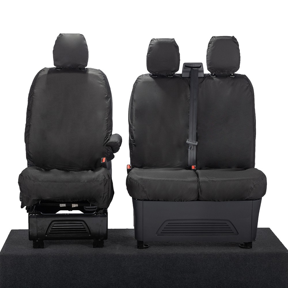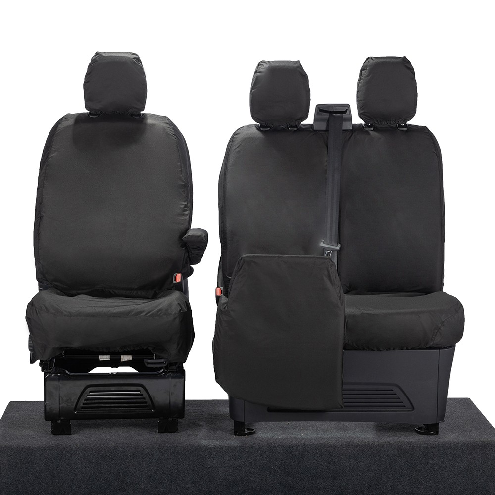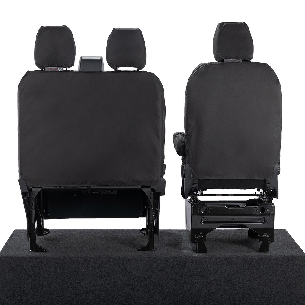 UK Custom Covers Ford Transit Custom Seat Covers Cotton-Backed PU (2023+) - Front (single/Double NO pull Down Tray / Black | SC335B