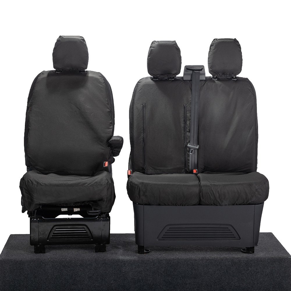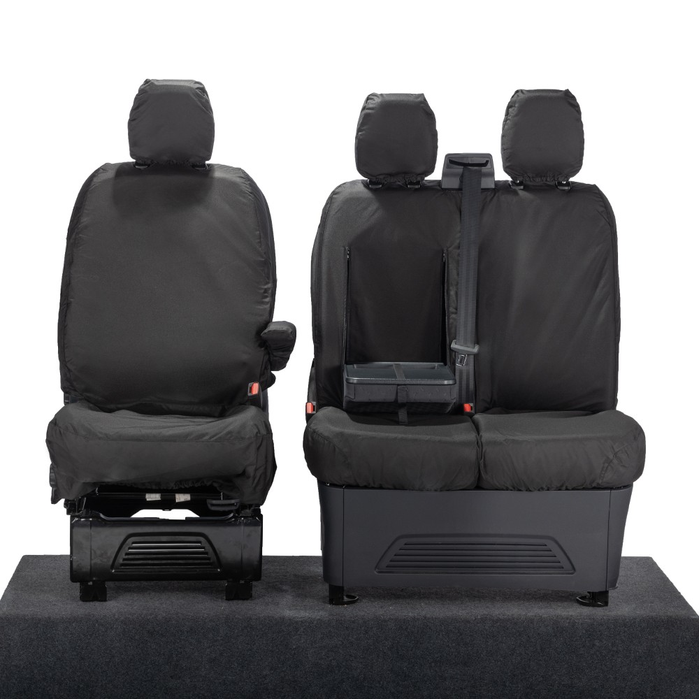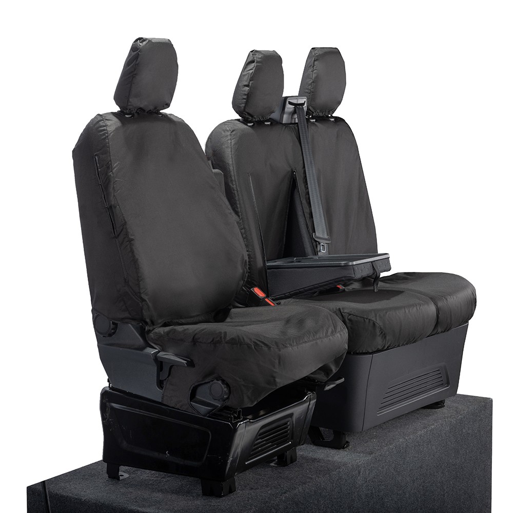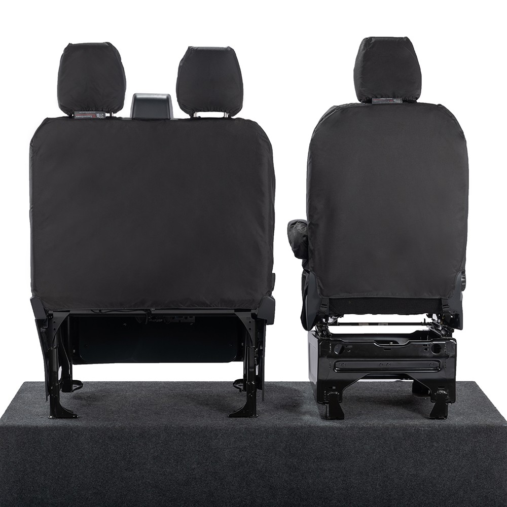 UK Custom Covers Ford Transit Custom Seat Covers Cotton-Backed PU (2023+) - Front (single/Double WITH pull Down Tray / Black | SC334B