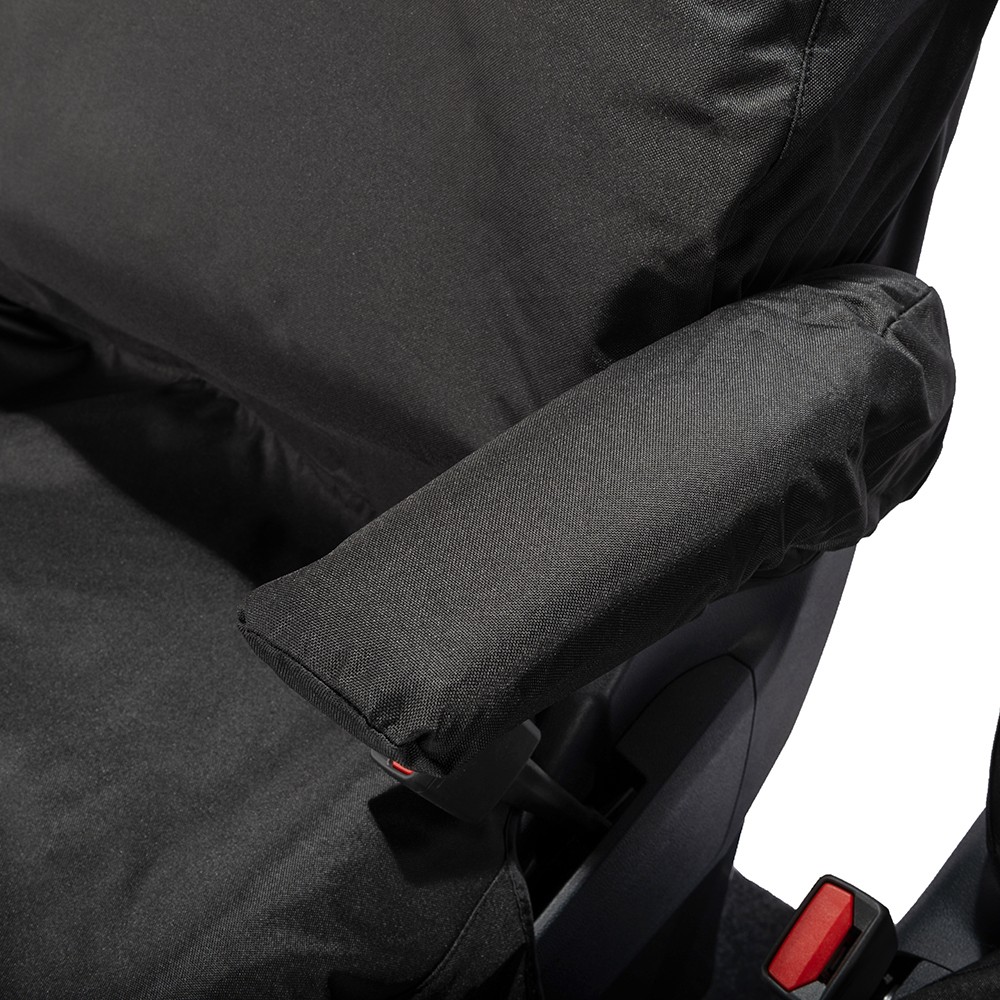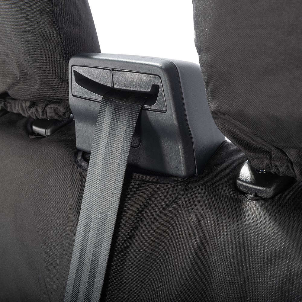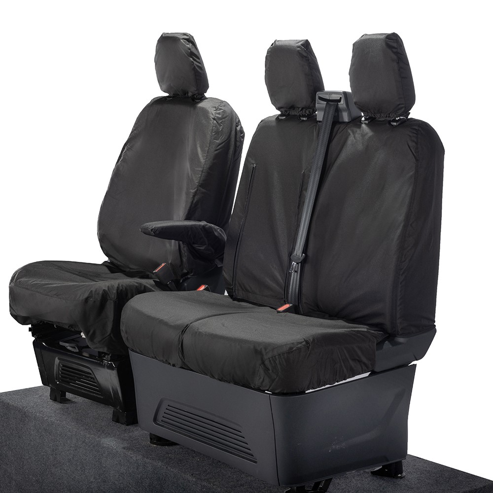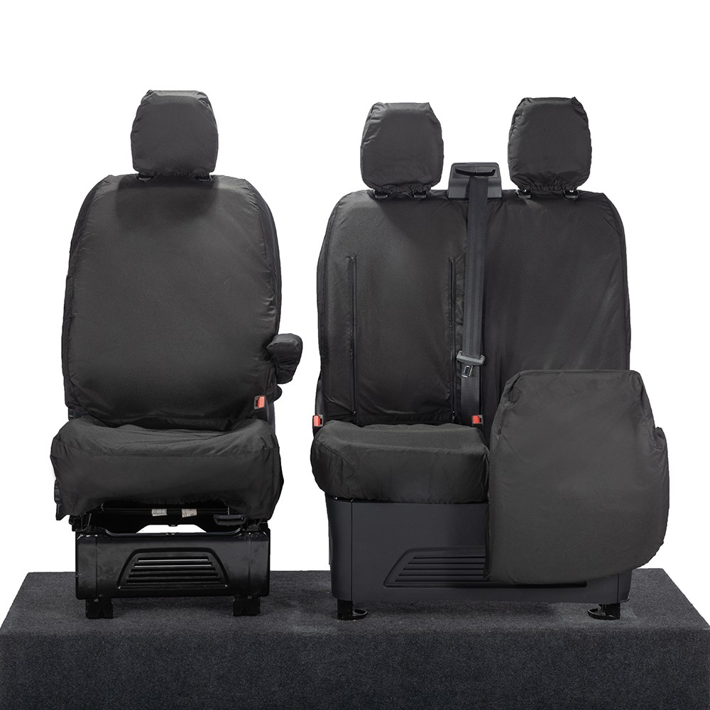 UK Custom Covers Ford Transit Custom Seat Covers Cotton-Backed PU (2023+) - Front (single/Double WITH pull Down Tray / Black | SC334B