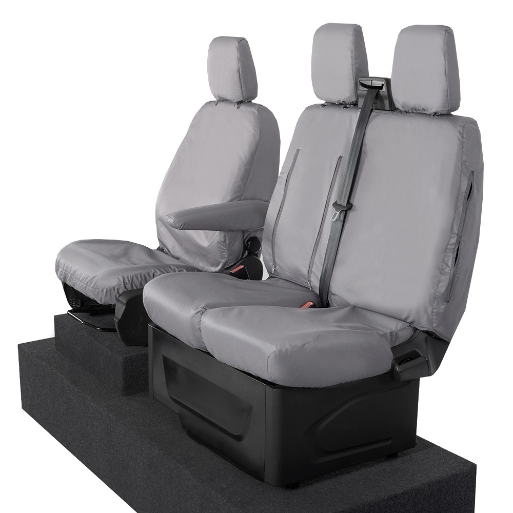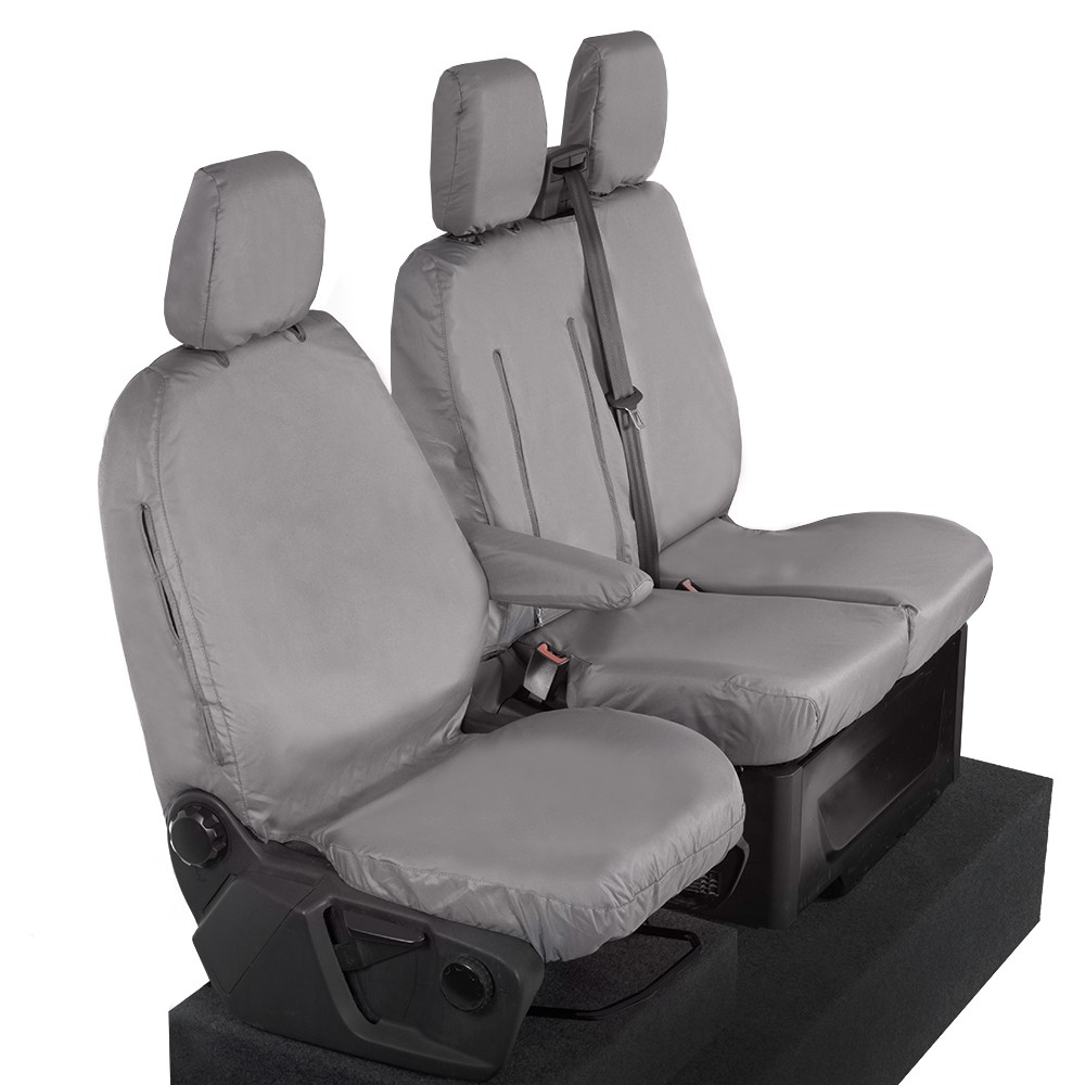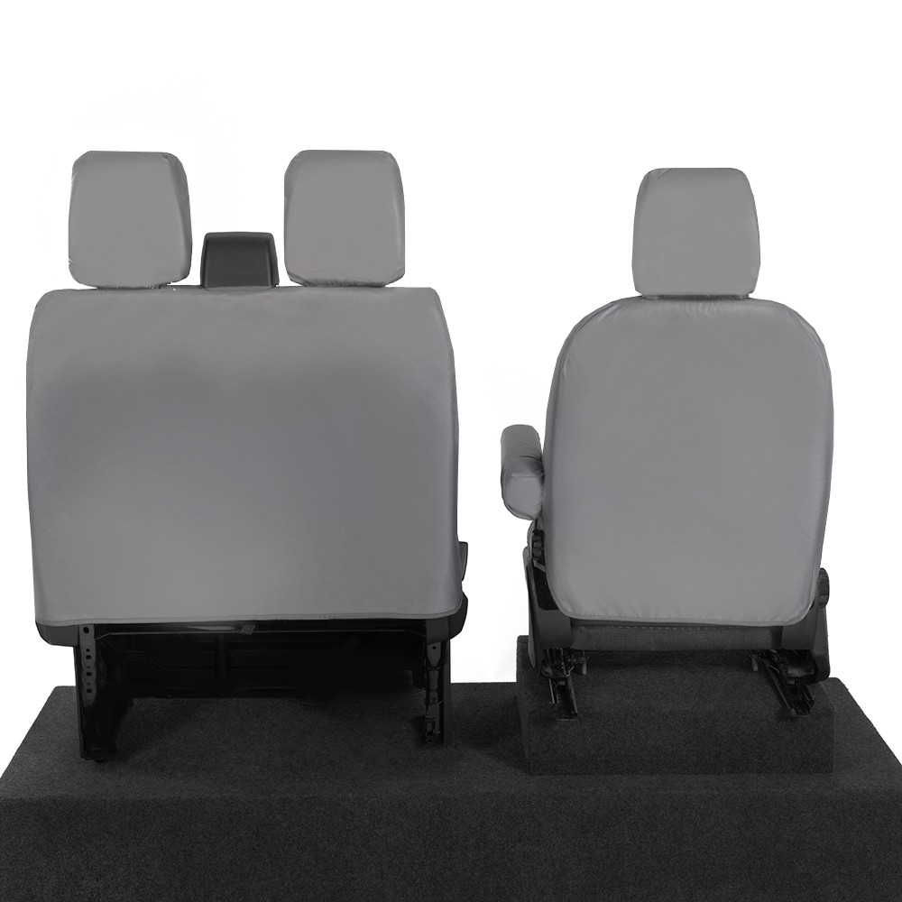 UK Custom Covers Ford Transit Custom Seat Covers Cotton-Backed PU (2023+) - Front (single/Double WITH pull Down Tray / Grey | SC334G