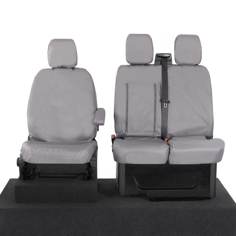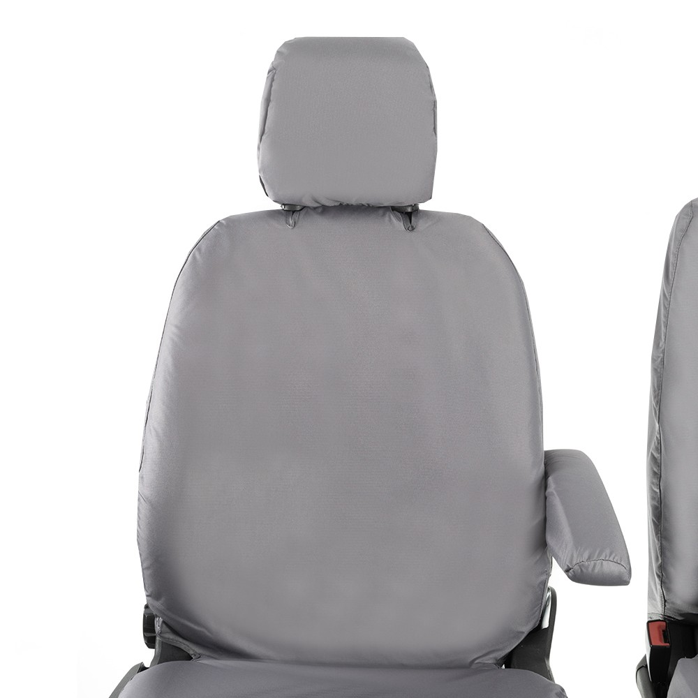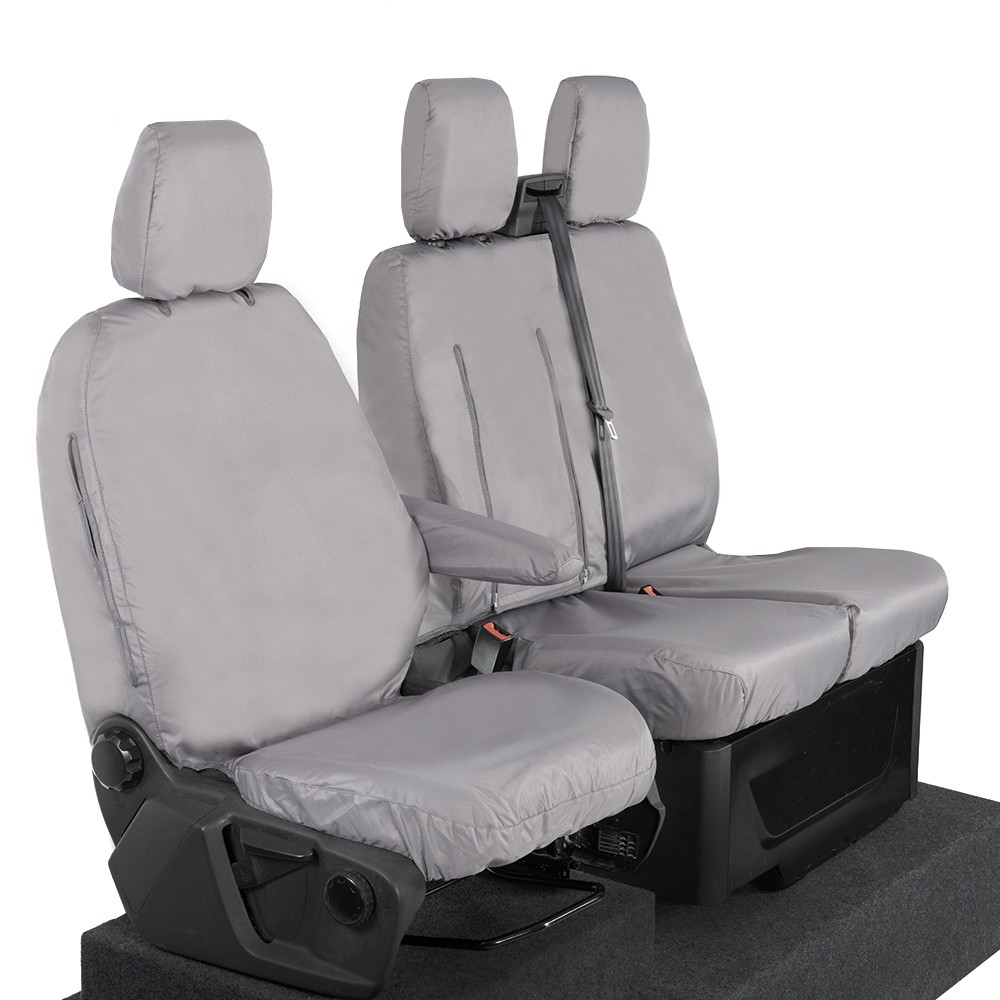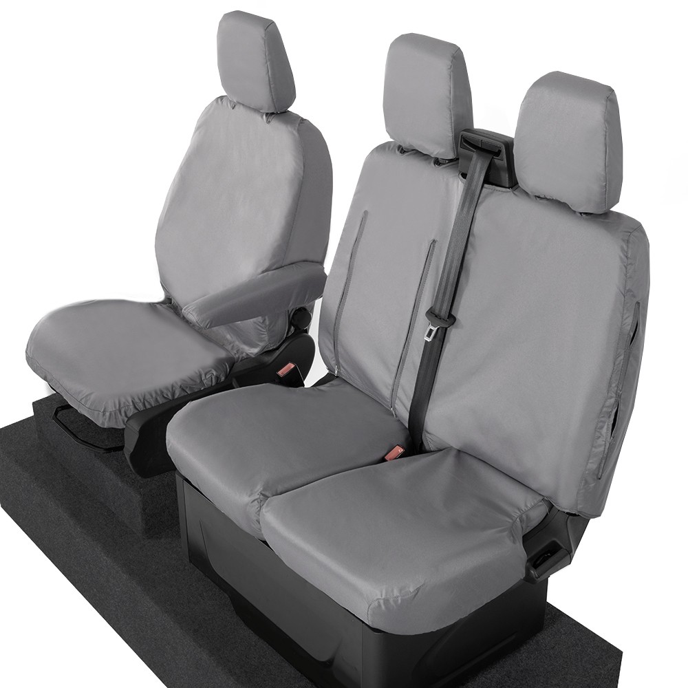 UK Custom Covers Ford Transit Custom Seat Covers Cotton-Backed PU (2023+) - Front (single/Double WITH pull Down Tray / Grey | SC334G