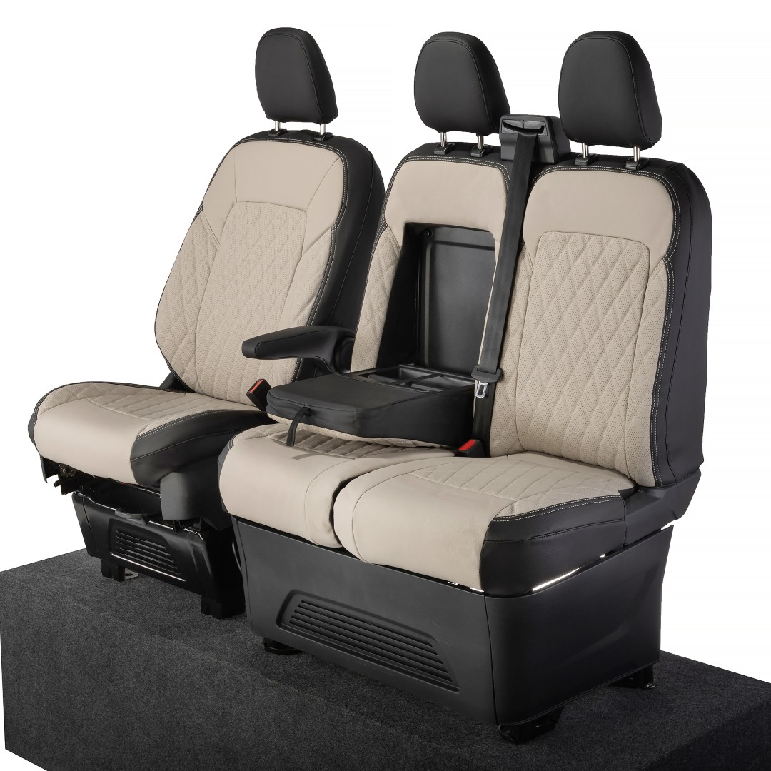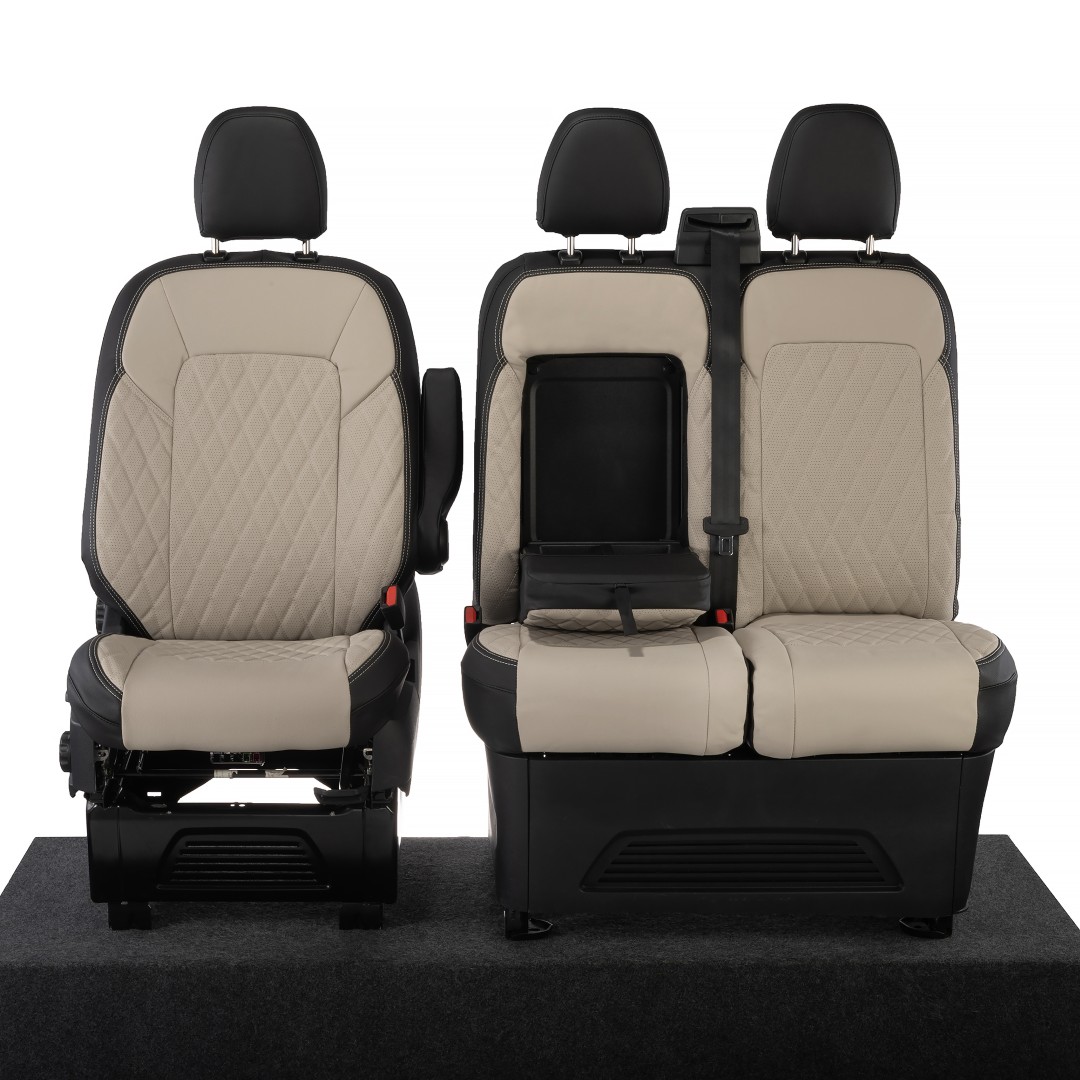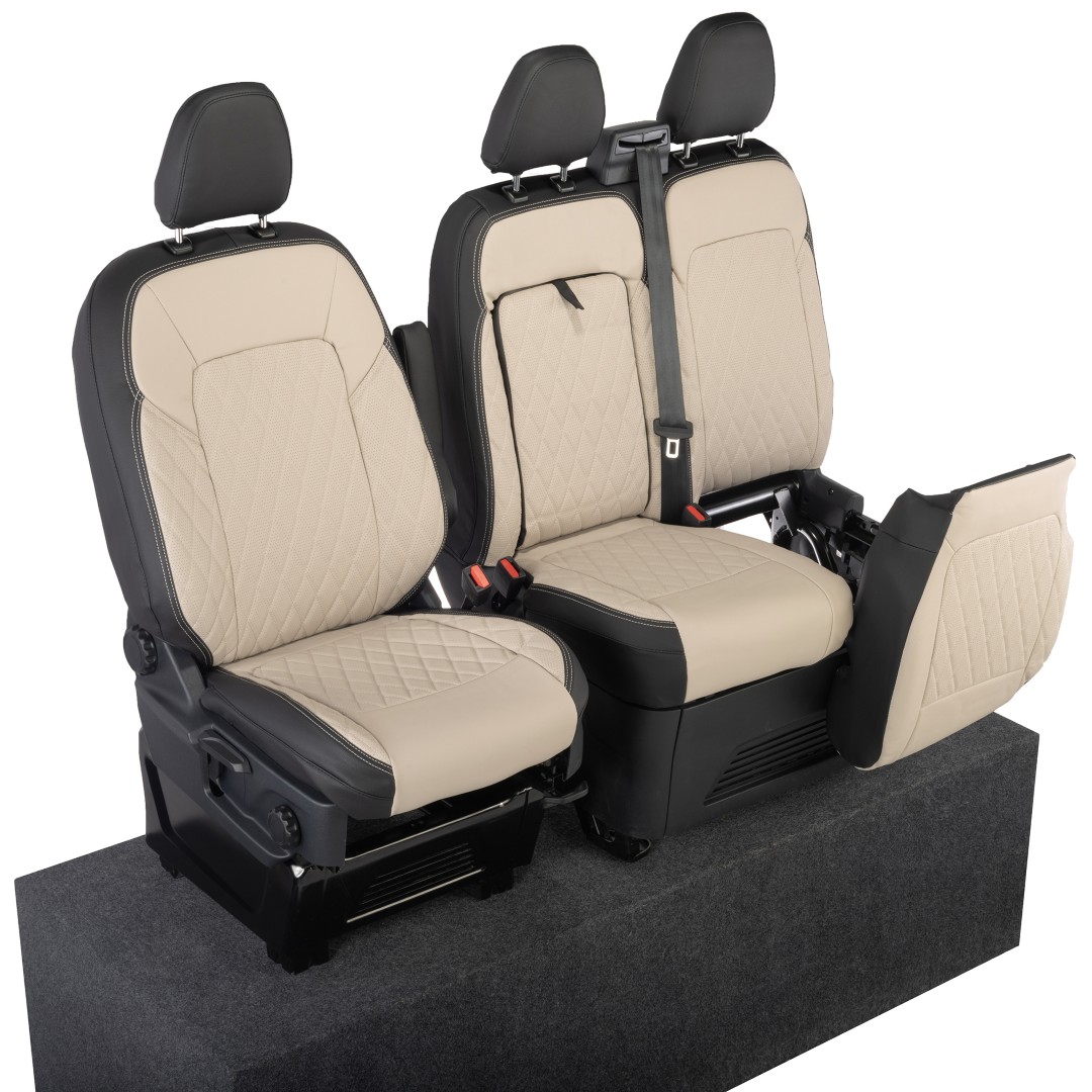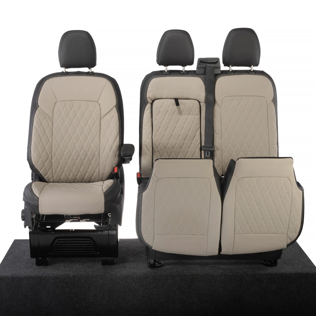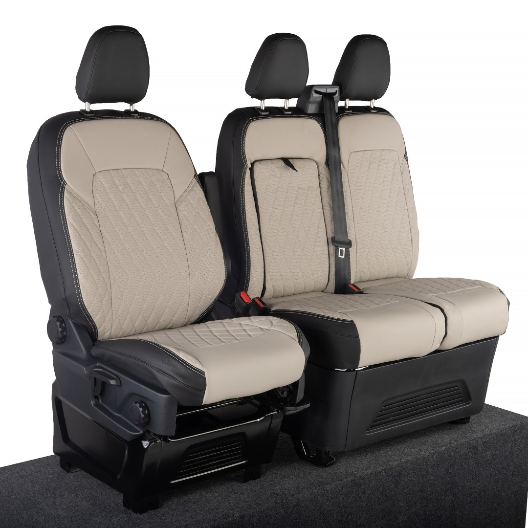 UK Custom Covers Ford Transit Custom Seat Covers Tailored Leatherette (2023+) - Diamond - 2 Tone | SC1277B