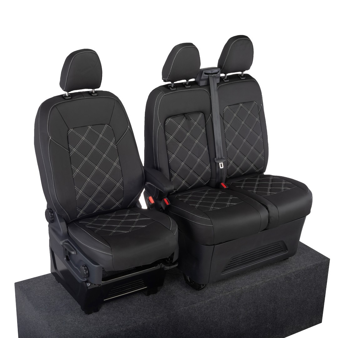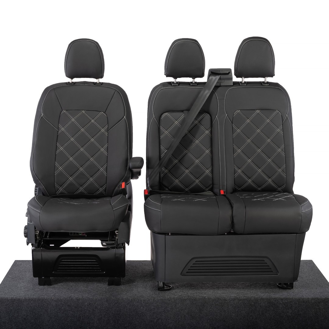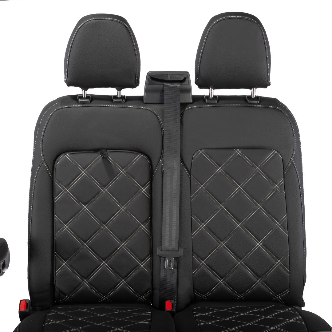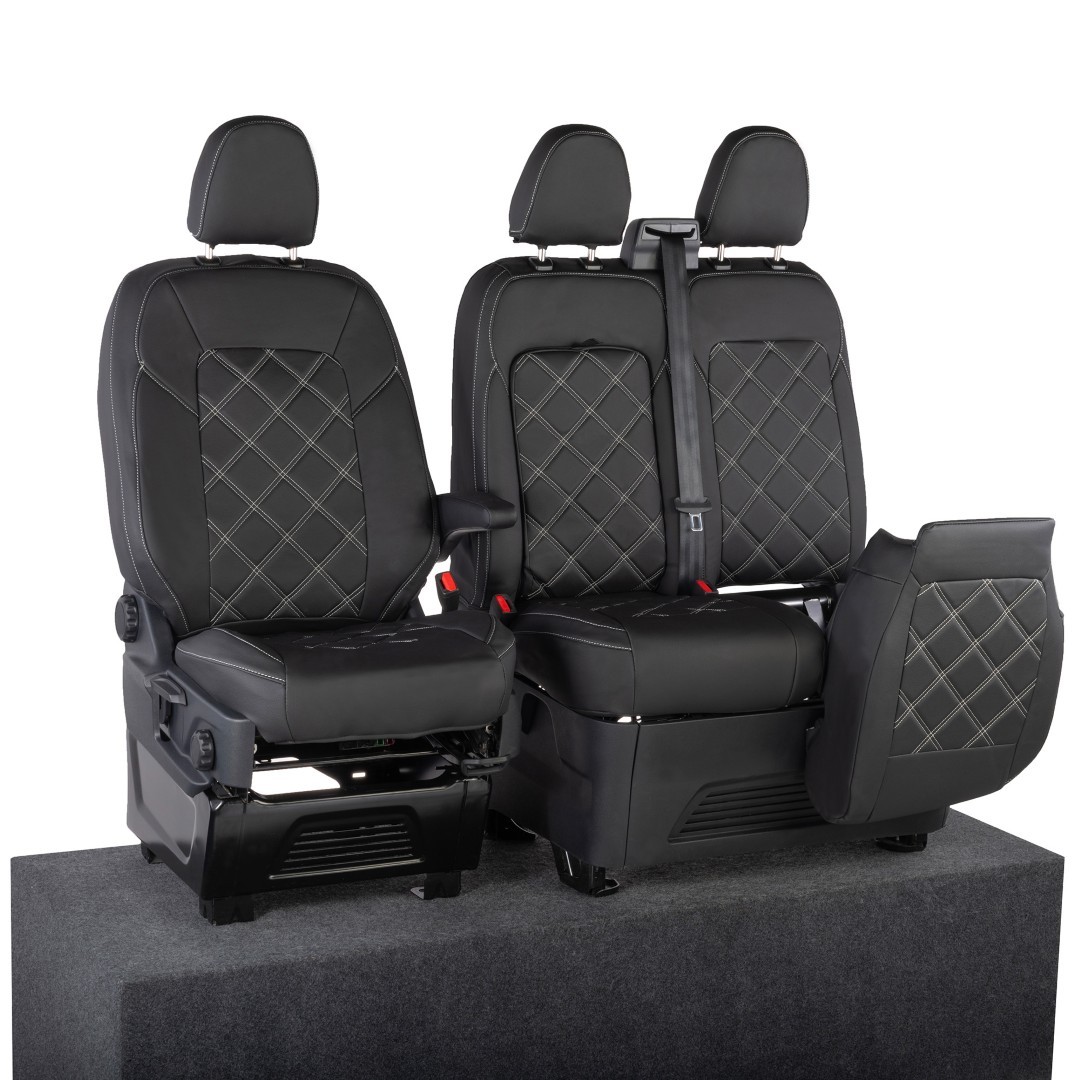 UK Custom Covers Ford Transit Custom Seat Covers Tailored Leatherette (2023+) - Double Bentley Stitch | SC1273B