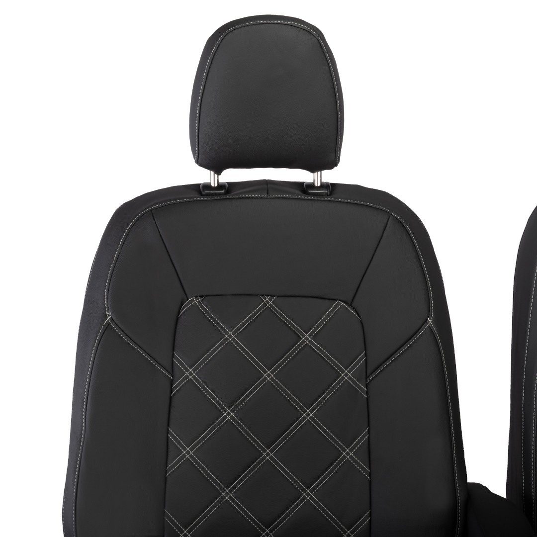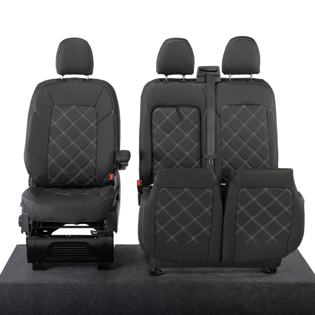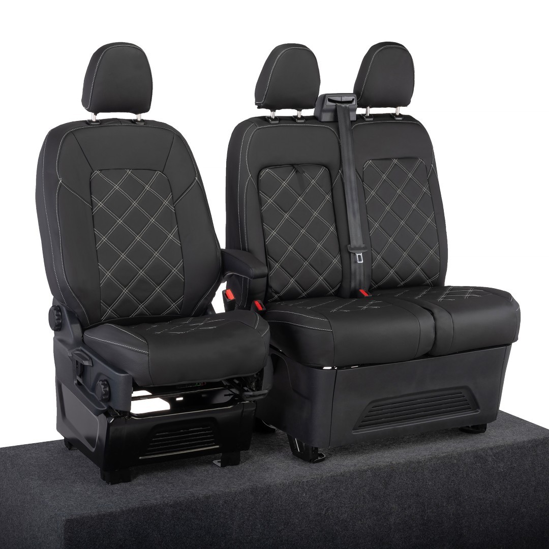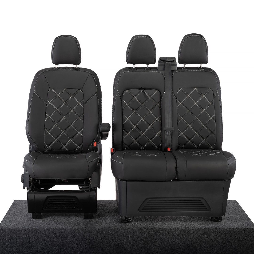 UK Custom Covers Ford Transit Custom Seat Covers Tailored Leatherette (2023+) - Double Bentley Stitch | SC1273B