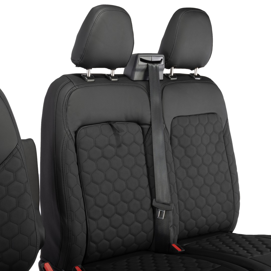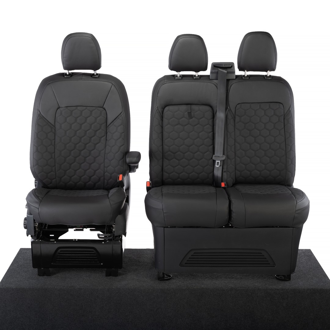 UK Custom Covers Ford Transit Custom Seat Covers Tailored Leatherette (2023+) - Honeycomb Stitch | SC1279B