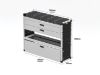 For the ultimate efficiency and versatility, the Gold package provides shelves, a drop-down door, a drawer, rubber matting, and racking bins to meet all your storage requirements. This package includes the driver-side racking.
