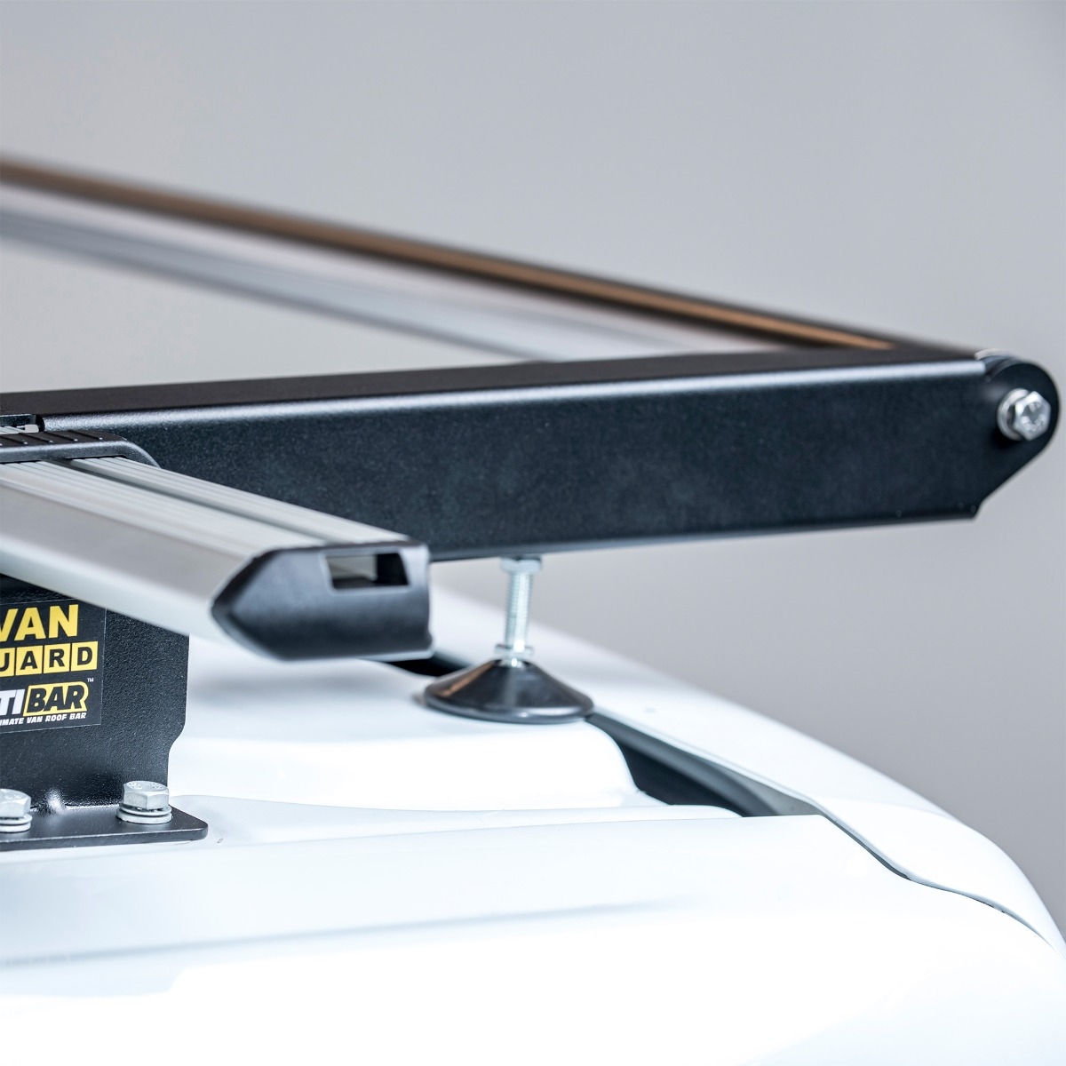 The Van Guard ULTIBar roof bars are constructed from aerodynamic, reinforced anodised aluminium extrusions bar, with galvanised powder-coated steel brackets and stainless steel fixing.