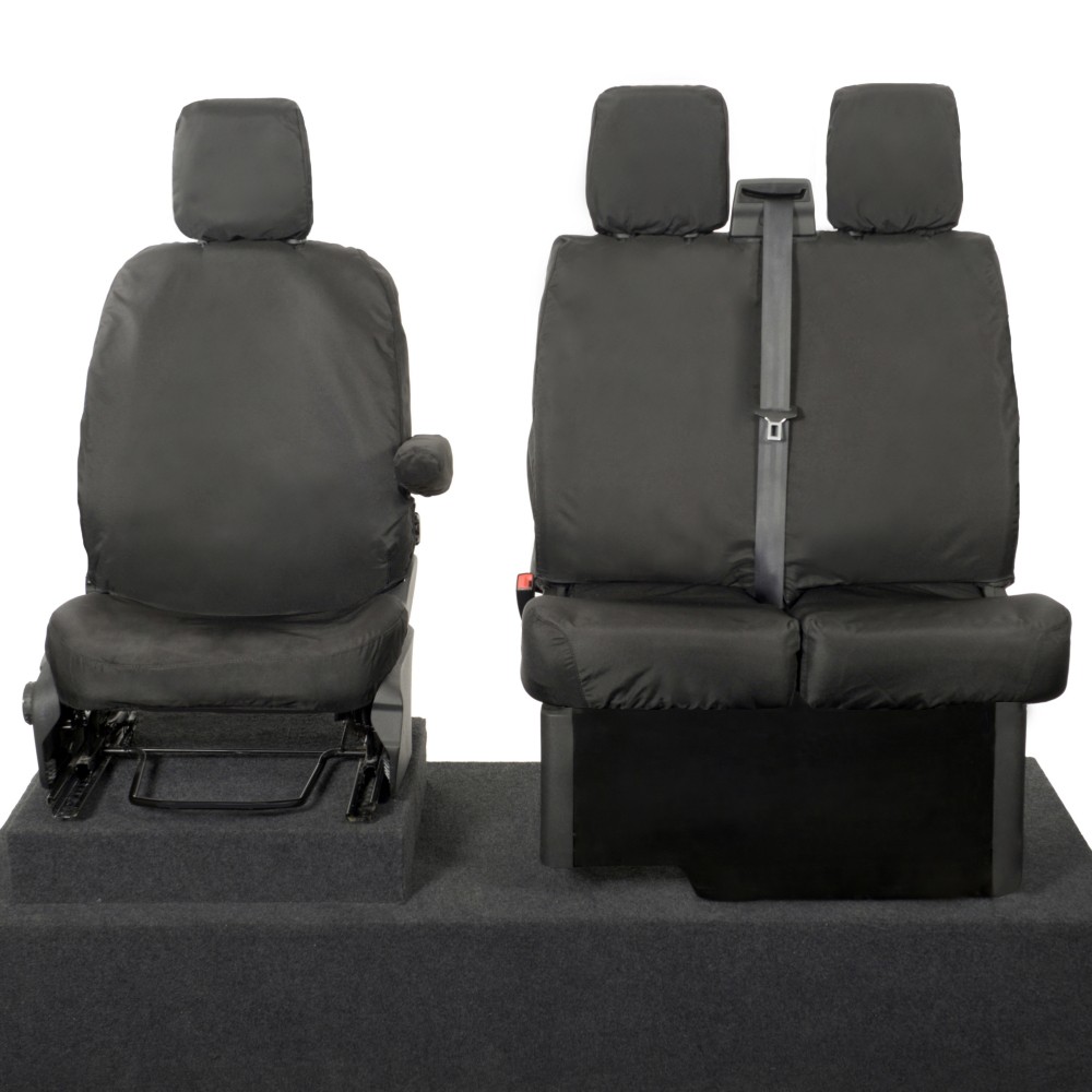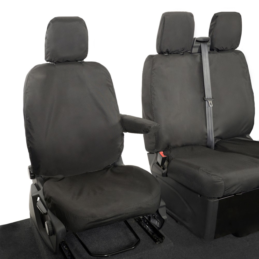 UK Custom Covers Ford Transit Custom Seat Covers Cotton-Backed PU (2013-2023) - Front (single/Double NO pull Down Tray / Black | SC436B