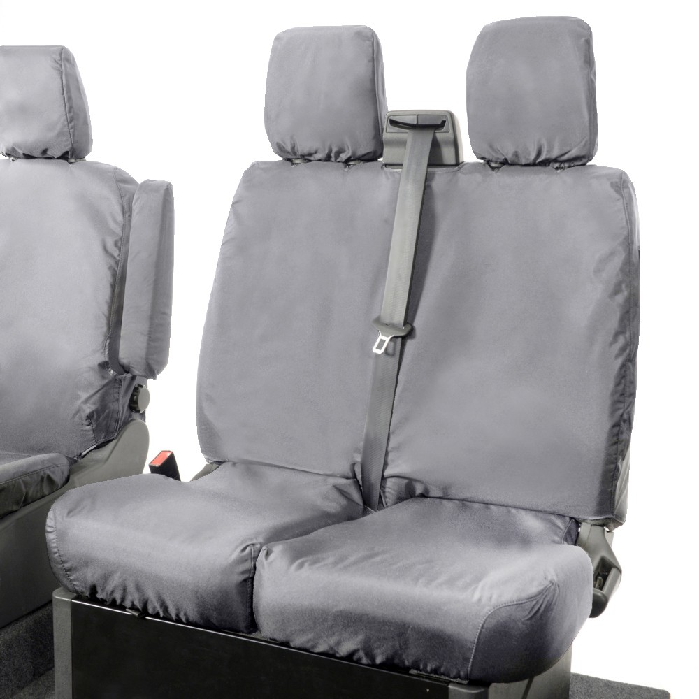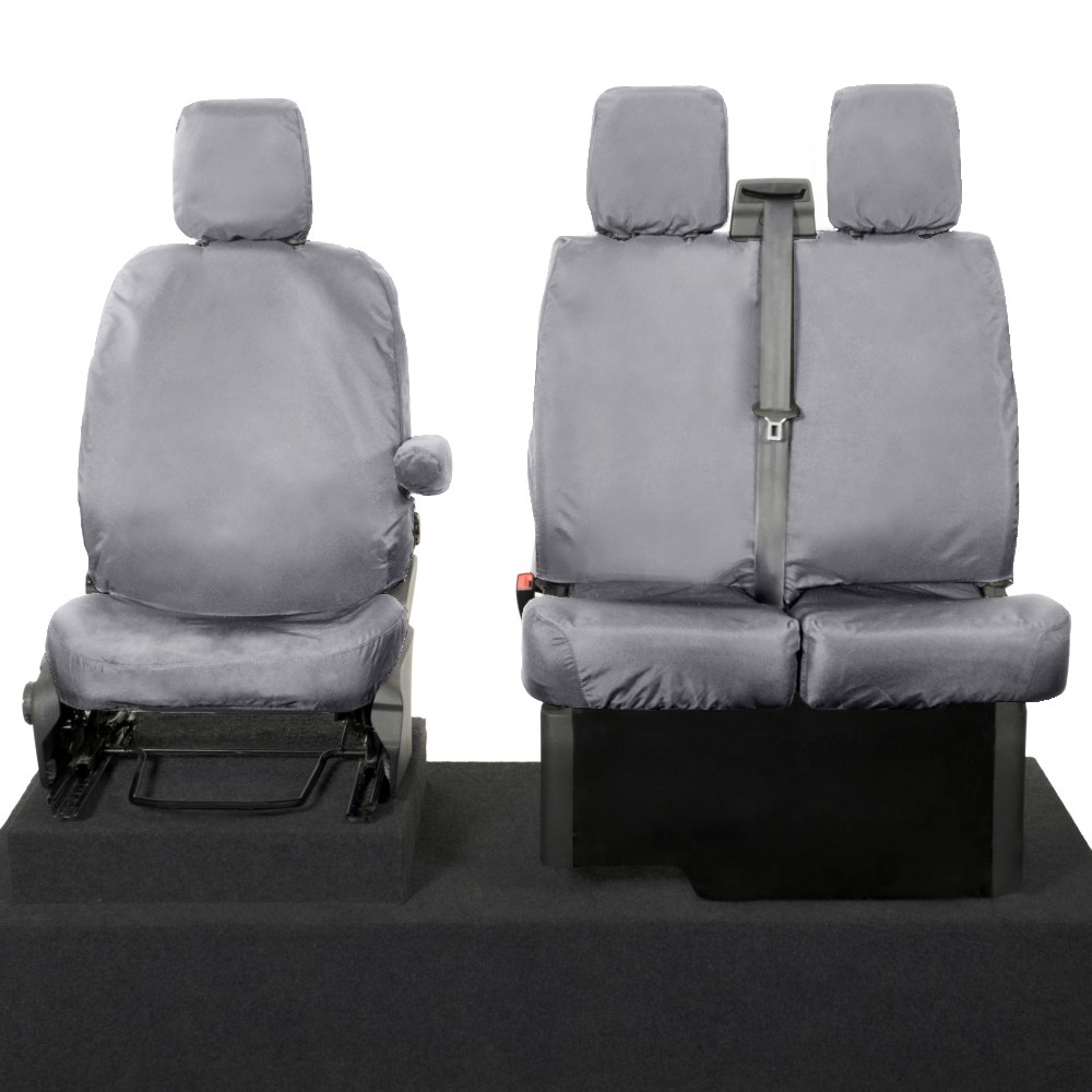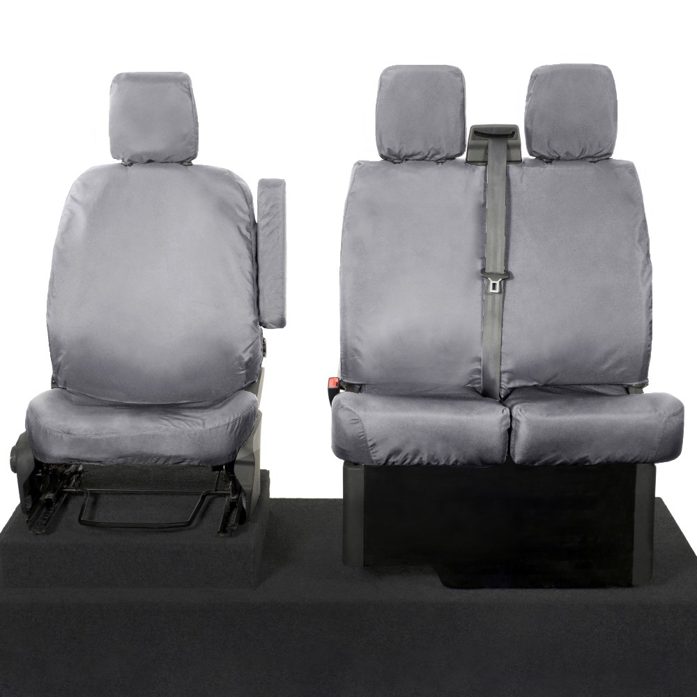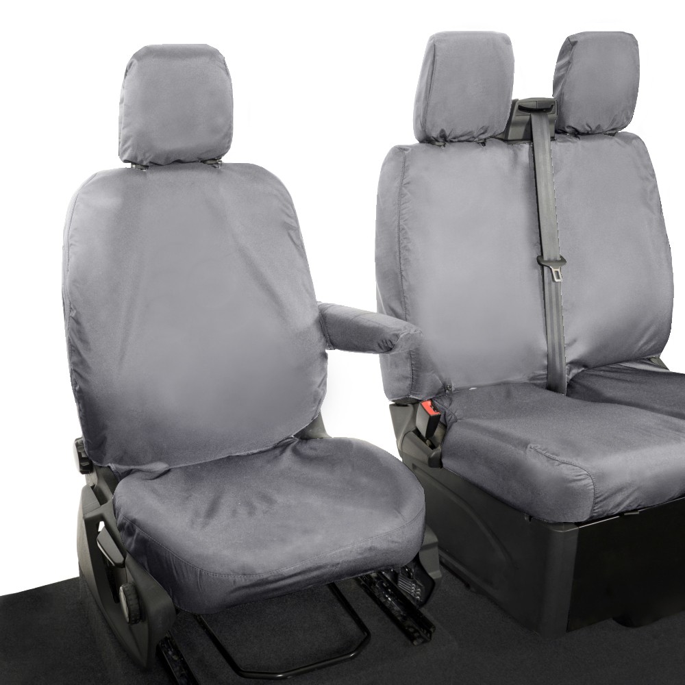 UK Custom Covers Ford Transit Custom Seat Covers Cotton-Backed PU (2013-2023) - Front (single/Double NO pull Down Tray / Grey | SC436G