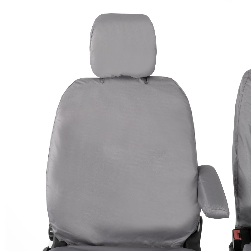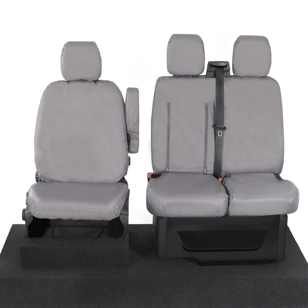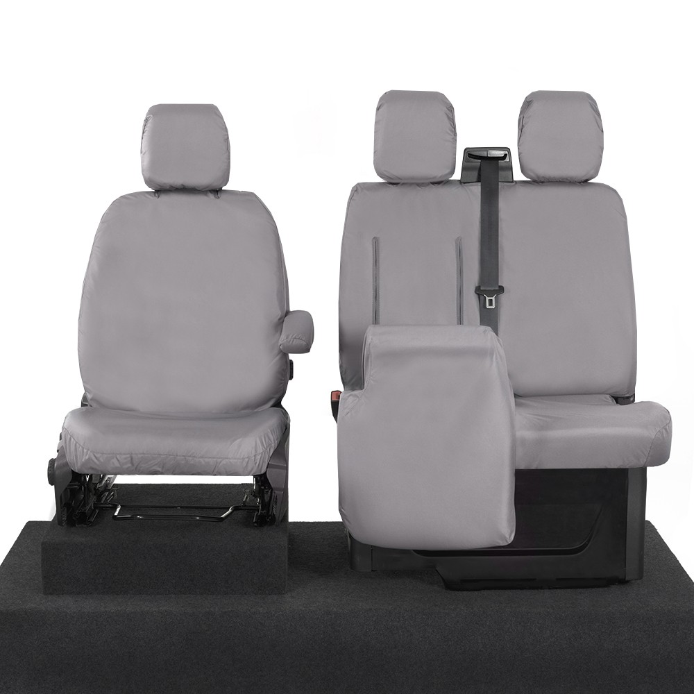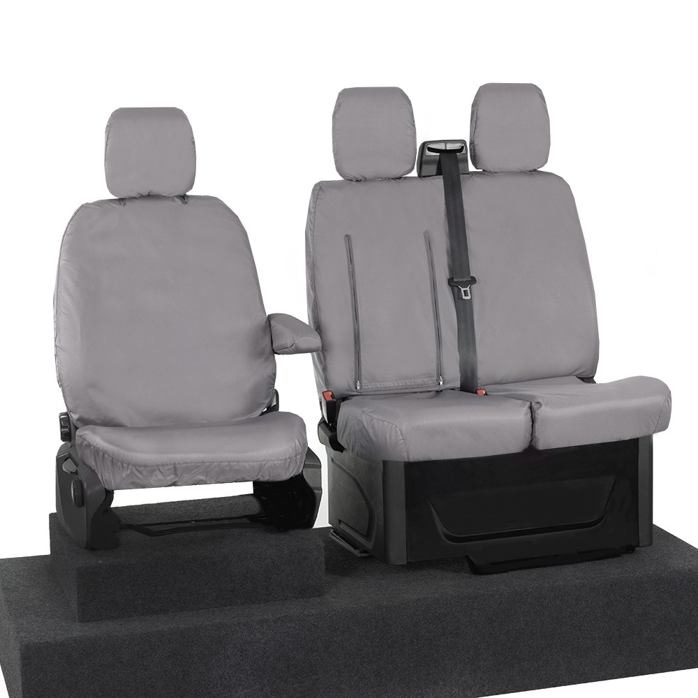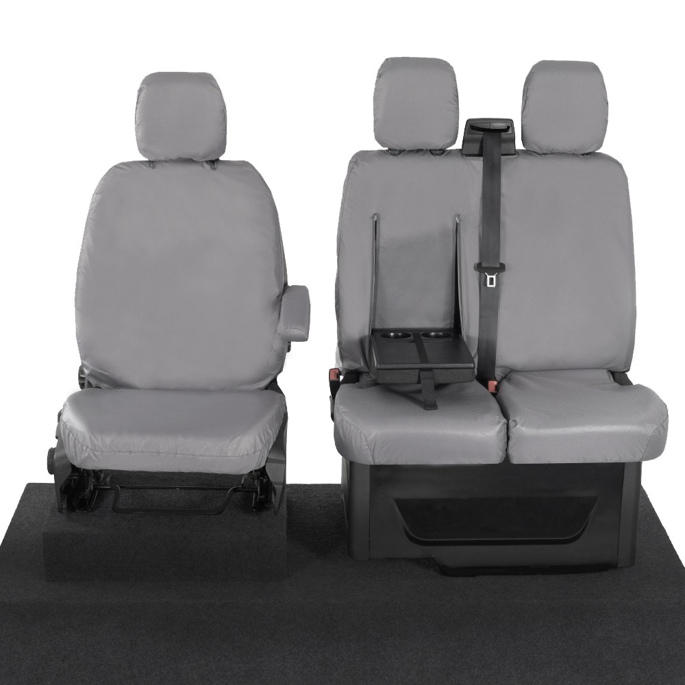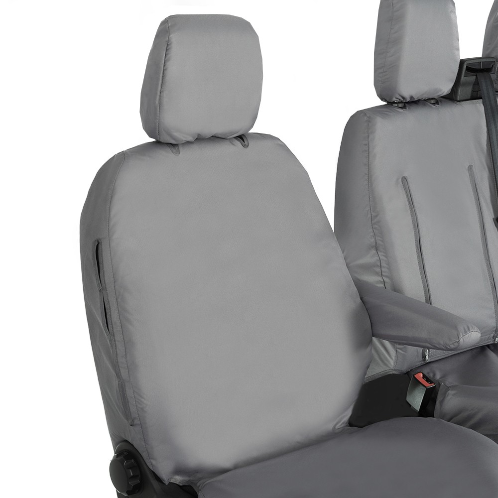 UK Custom Covers Ford Transit Custom Seat Covers Cotton-Backed PU (2013-2023) - Front (single/Double WITH pull Down Tray / Grey | SC102G