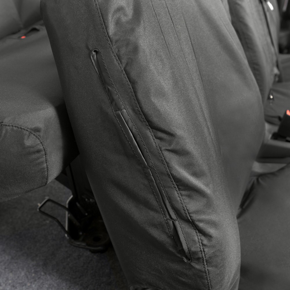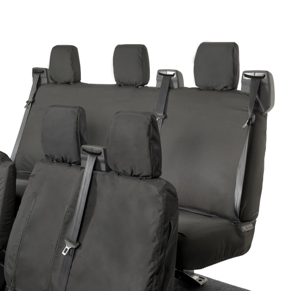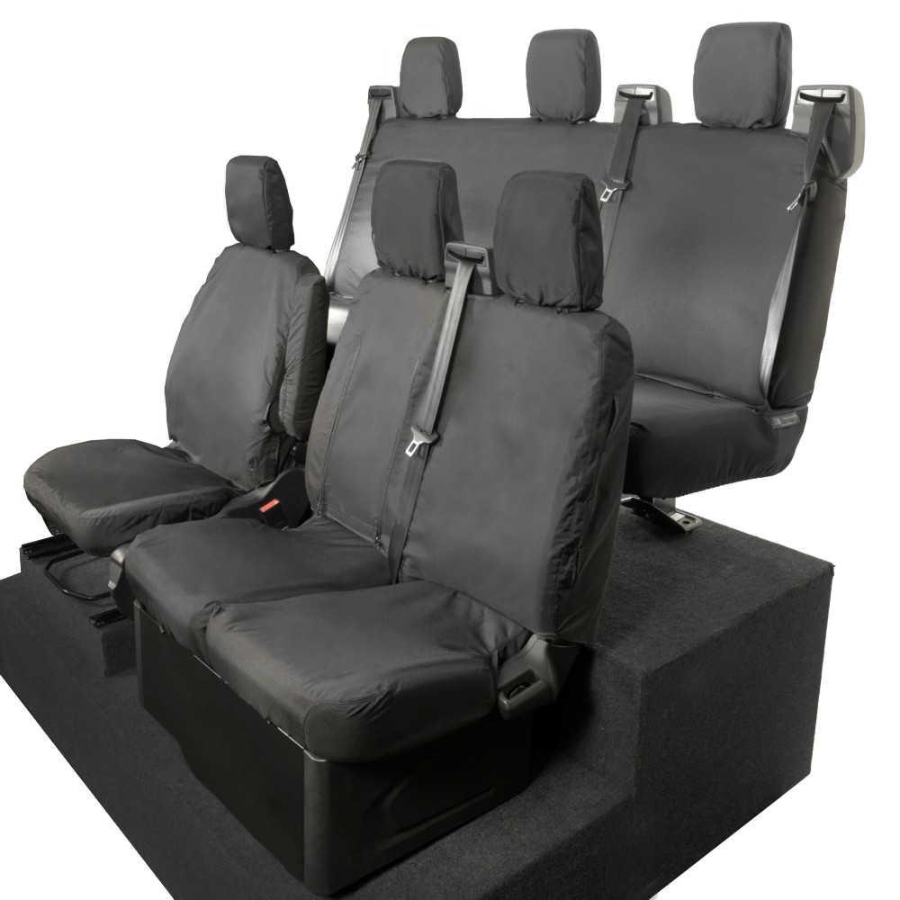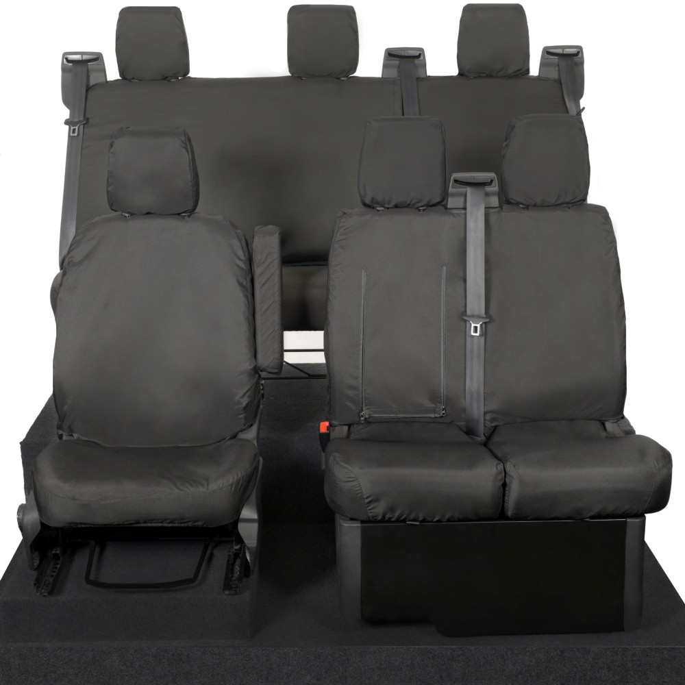 UK Custom Covers Ford Transit Custom Seat Covers Cotton-Backed PU (2013-2023) - Front & Rear (6 Seat With Front Pull Down Tray) - Black | SC102B-131B