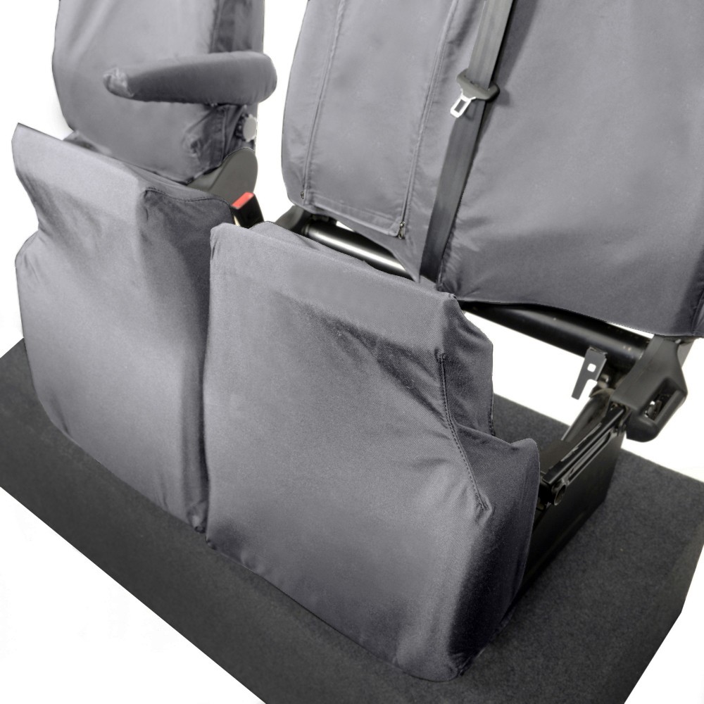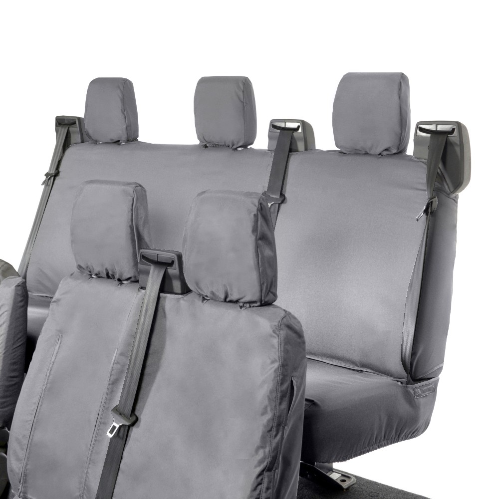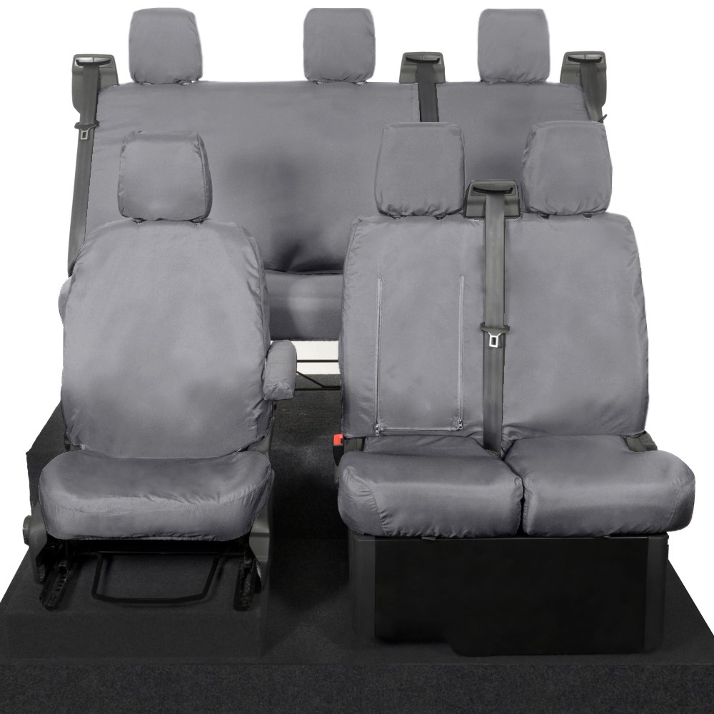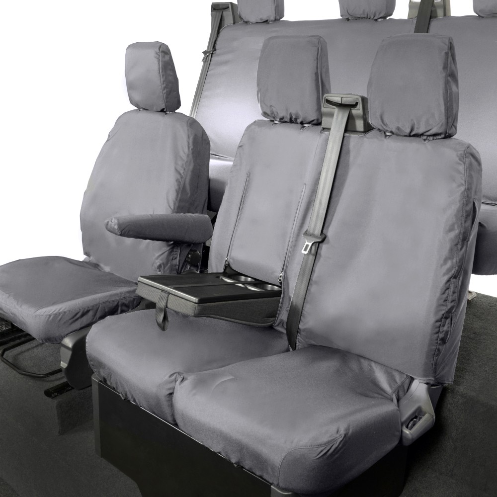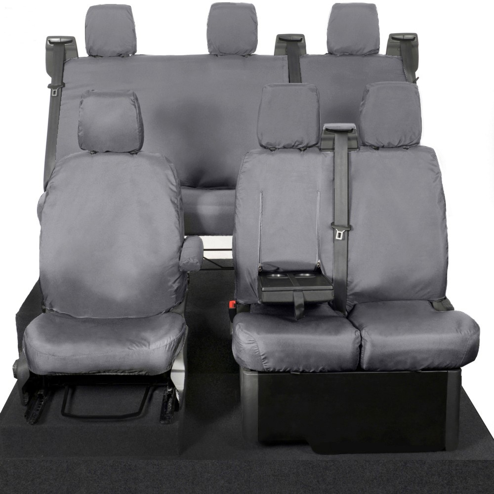 UK Custom Covers Ford Transit Custom Seat Covers Cotton-Backed PU (2013-2023) - Front & Rear (6 Seat With Front Pull Down Tray) - Grey | SC102G-131G