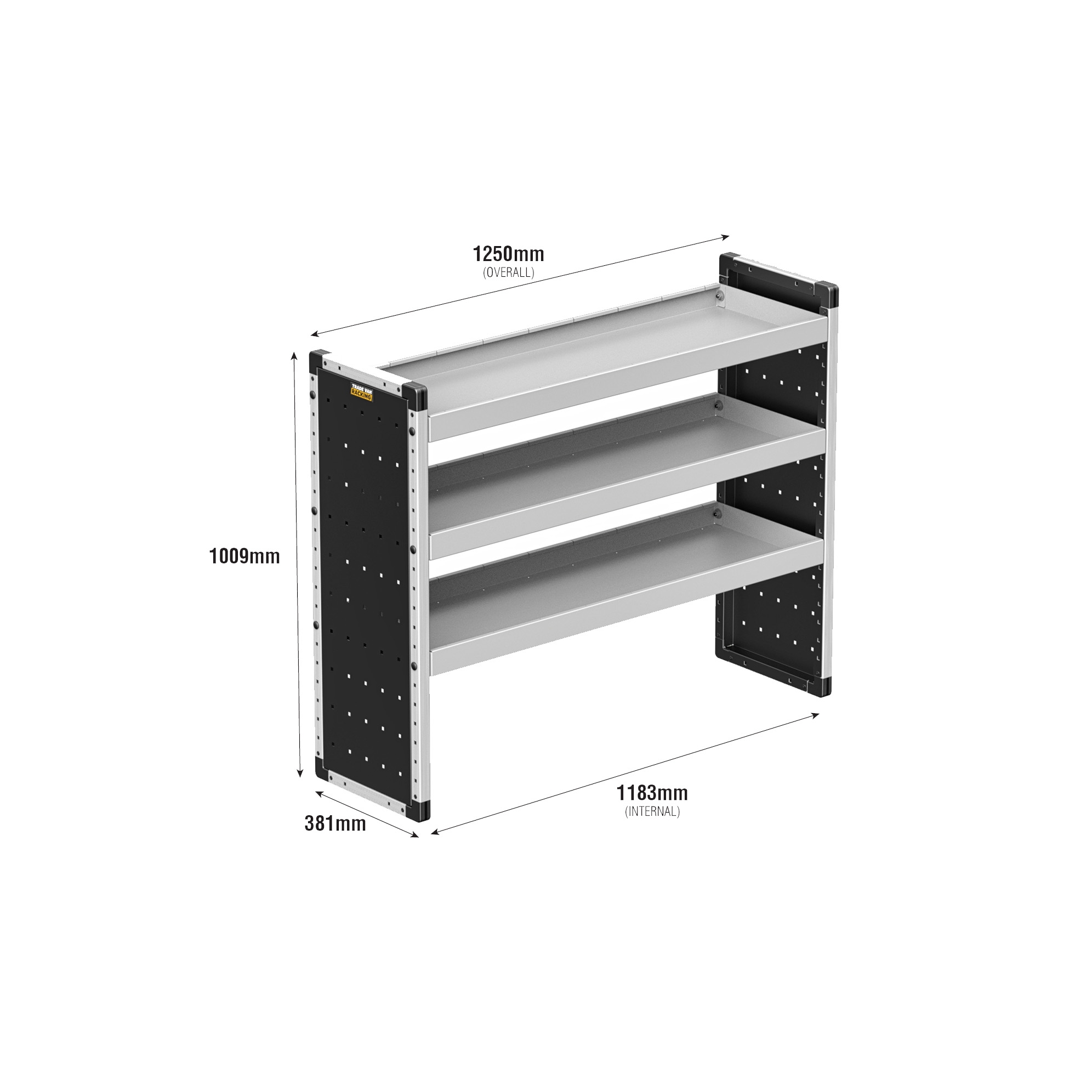 A premium product at a non-premium price, our Trade Van Racking is straightforward to assemble and has been crash-tested to industry standards. Available as single or double units to best utilise the load area, and a choice of fully adjustable straight and angled shelves, allows the carrying of tool cases and smaller components.