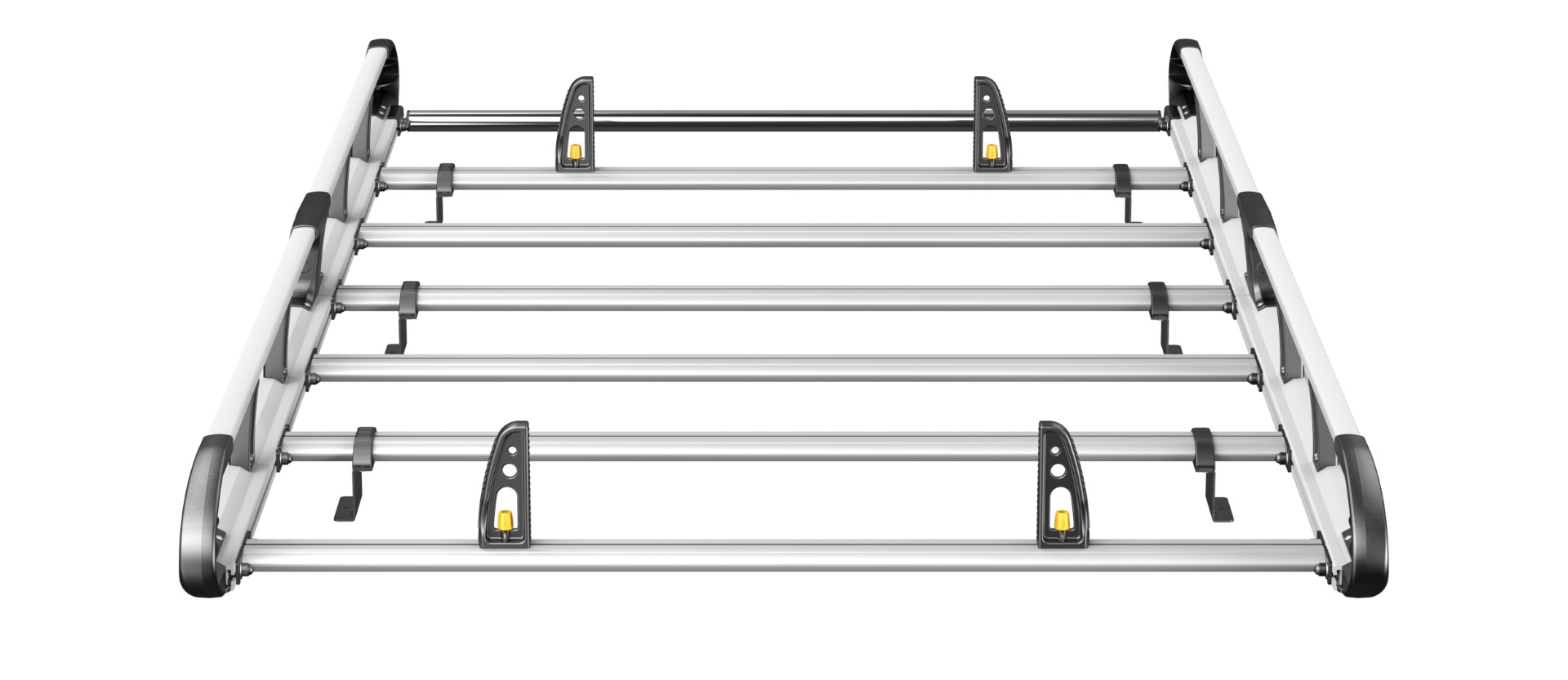 The ULTIRack+ is a large gallery style van roof rack and it's perfect for carrying wide loads. Unlike Van Guards roof bars, the ULTIRack+ van roof rack includes built-up side channels making it a firm favourite amongst those looking to quickly load and unload items on their van's roof, from ladders to 8x4 sheets.