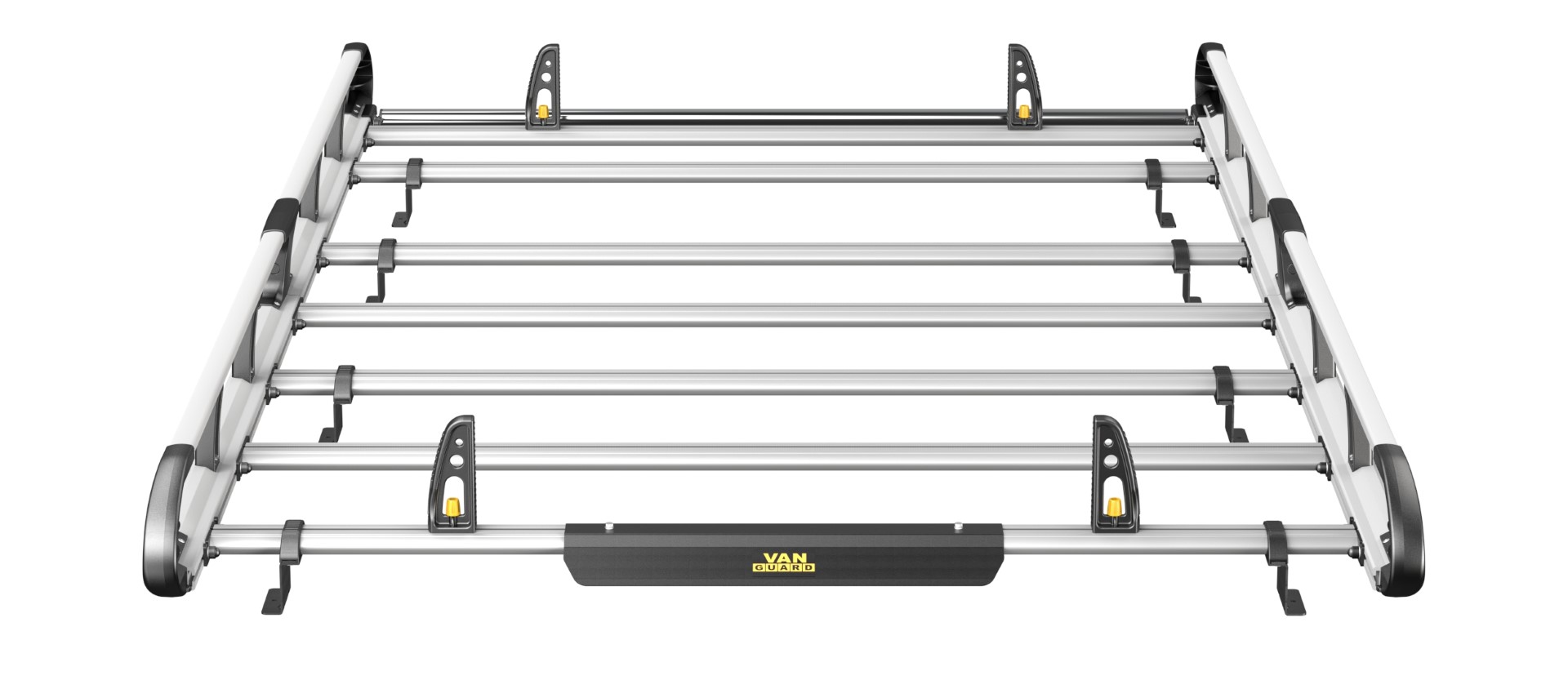 The ULTIRack+ is a large gallery style van roof rack and it's perfect for carrying wide loads. Unlike Van Guards roof bars, the ULTIRack+ van roof rack includes built-up side channels making it a firm favourite amongst those looking to quickly load and unload items on their van's roof, from ladders to 8x4 sheets.