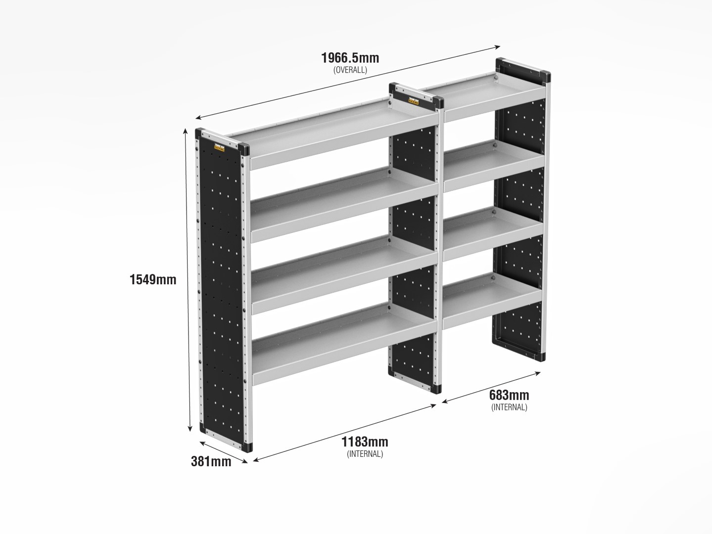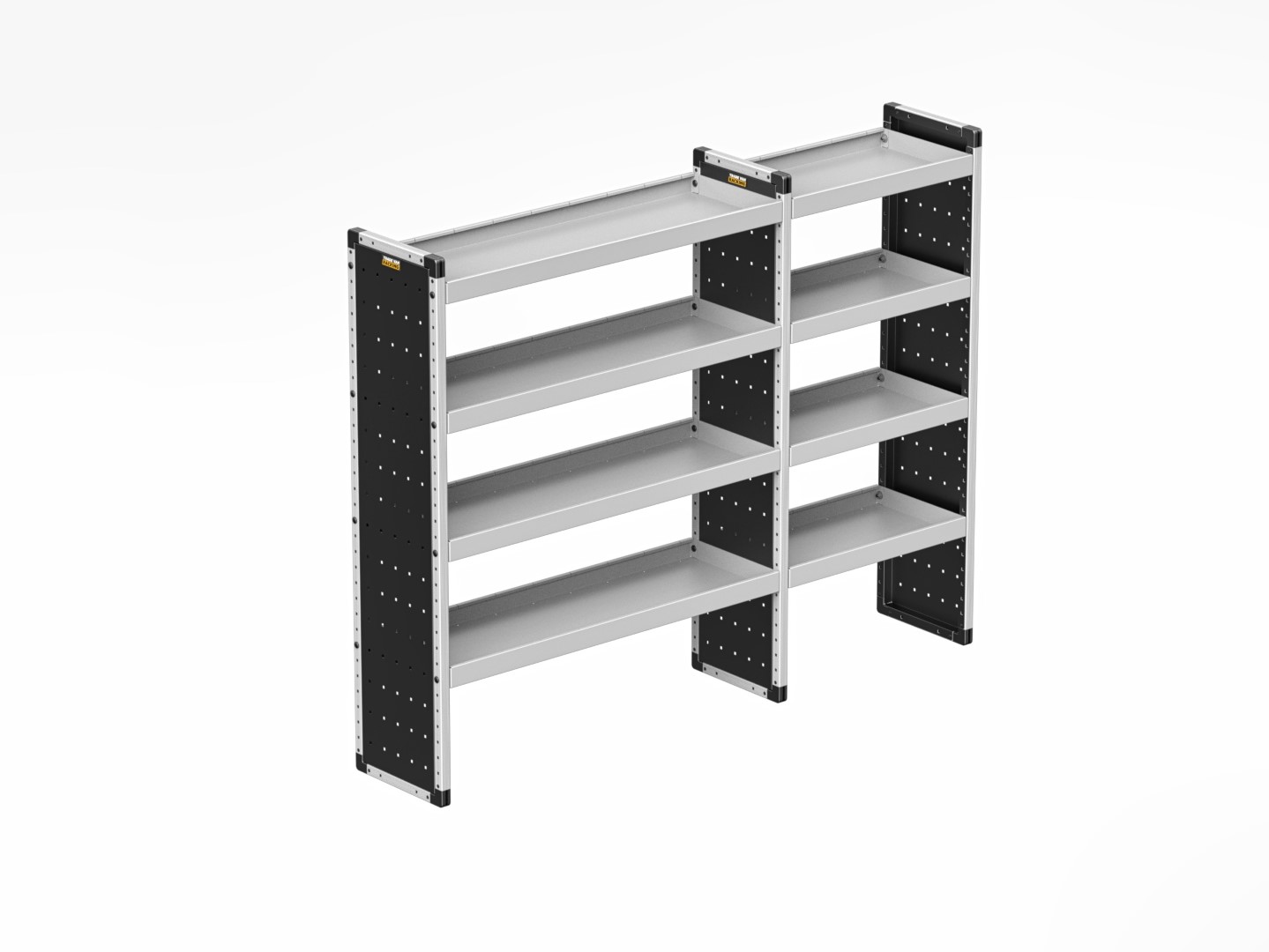 A premium product at a non-premium price, our Trade Van Racking is straightforward to assemble and has been crash-tested to industry standards. Available as single or double units to best utilise the load area, and a choice of fully adjustable straight and angled shelves, allows the carrying of tool cases and smaller components.